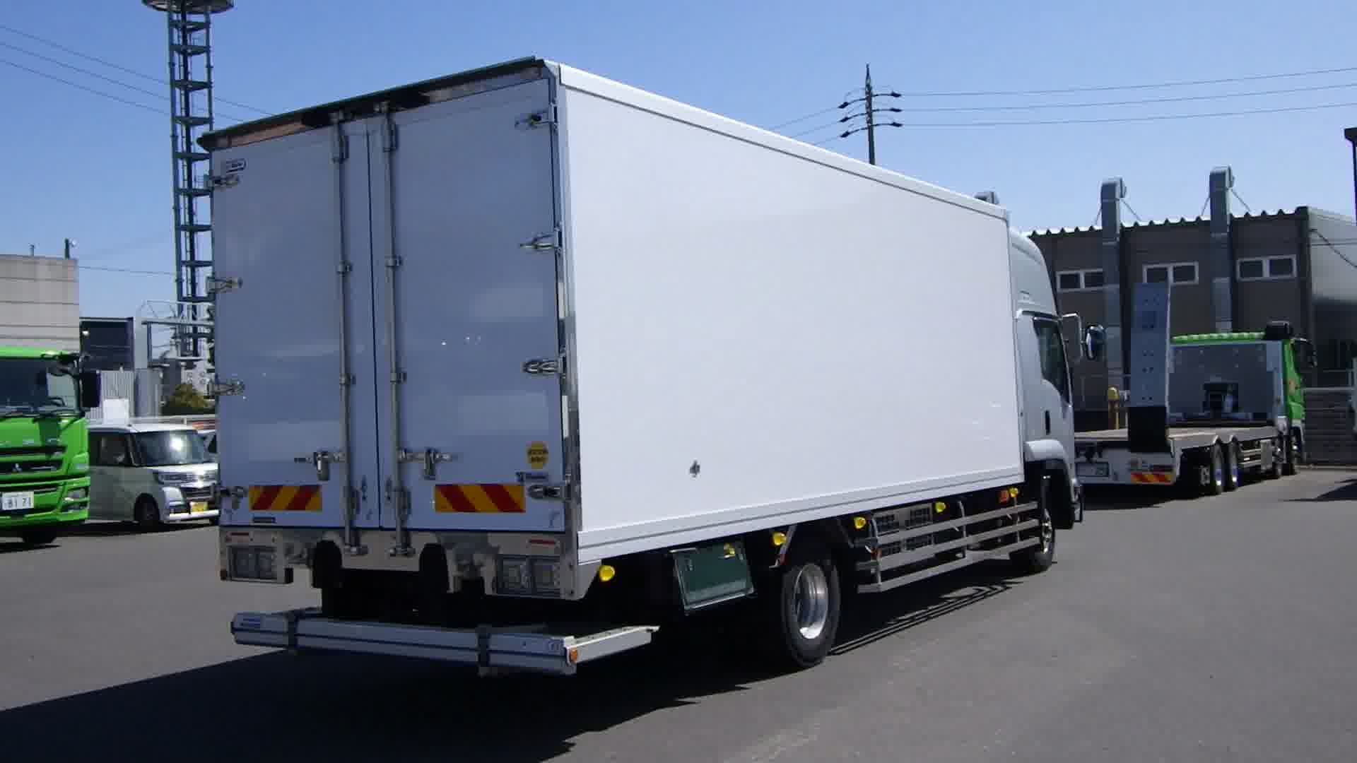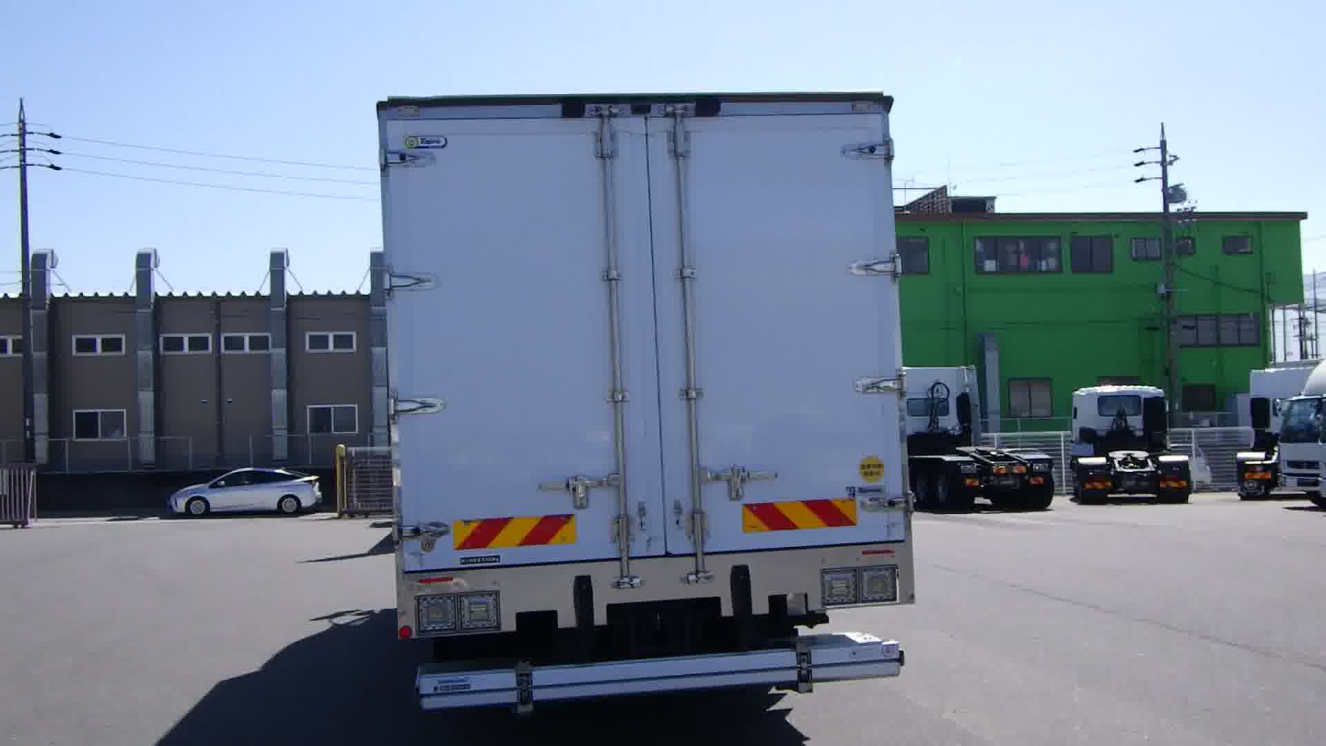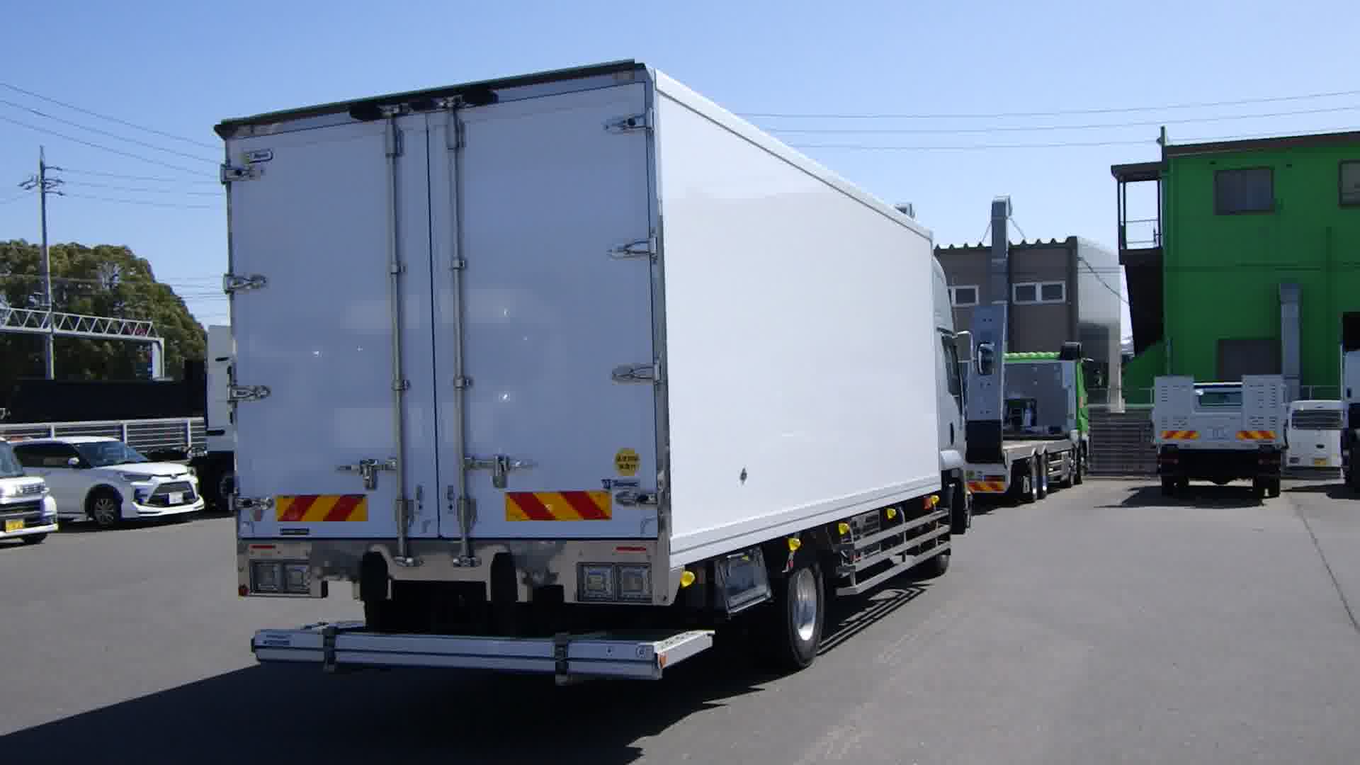 | 装備 | 最大積載量:5100kg / 上物:東プレ(年式:2022年8月・シリアルNo:F221985) / 冷凍機:東プレ(30℃~-30℃設定・11℃→-16℃ 1時間・1室・直結式) / 格納式パワーゲート(新明和工業 L:155cm W:230cm 荷重:1000kg・型式:RAK10-6495D・シリアル№:S2206000071・ラジコン・箱内リモコン) / ハイルーフ / 電動キャブチルト / 床:システムフロア / ラッシング 2段 / キーレス / イモビライザー / アルミホイール / アドブルー / カラーバックモニター / ETC / エアサスシート / ベッド | ||